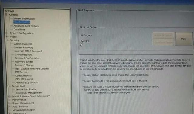在General目录中,找到Boot Sequence选项。将所有启动选项都勾选上,并在下方选择Legacy,如下图所示。